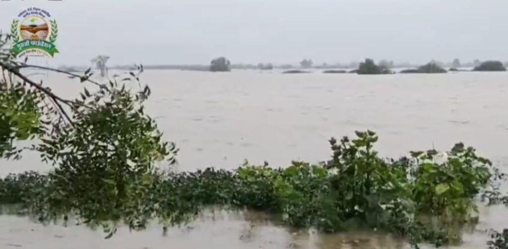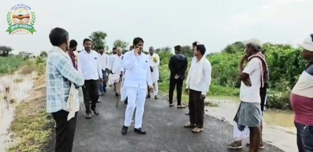 धर्माबाद :- नांदेड जिल्ह्यात सुरू असलेल्या मुसळधार पावसामुळे अनेक गावांमध्ये पूरस्थिती निर्माण झाली आहे. या भीषण परिस्थितीची दखल घेत लोककल्याणकारी शेतकरी नेते कवळे गुरुजी यांनी धर्माबाद तालुक्यातील चोंडी चोळाखा गावातील पूरग्रस्त भागाची प्रत्यक्ष पाहणी केली. त्यांनी शेतकऱ्यांच्या बांधावर जाऊन नुकसानीचा आढावा घेतला.