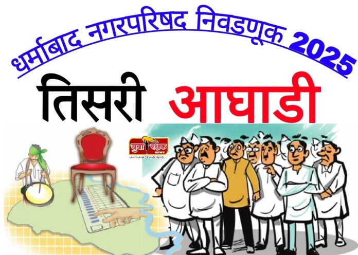 धर्माबाद :- धर्माबाद नगर परिषदेच्या आगामी २०२५ च्या निवडणुकीत ‘तिसऱ्या आघाडी’ ने अत्यंत महत्त्वाचा प्रवेश केल्यामुळे शहरातील राजकीय वर्तुळात मोठी खळबळ माजली आहे. ही तिसरी आघाडी नगराध्यक्षपदासह सर्व नगरसेवक जागांवर आपले उमेदवार उभे करणार असल्यामुळे, अनेक वर्षांपासून चाललेली पारंपरिक दोन गटांतील लढत आता ‘तिरंगी’ होण्याची दाट शक्यता आहे. यामुळे धर्माबादचे राजकारण एका नव्या वळणावर आले असून, शहरात या नवीन राजकीय समीकरणांची जोरदार चर्चा सुरू आहे.