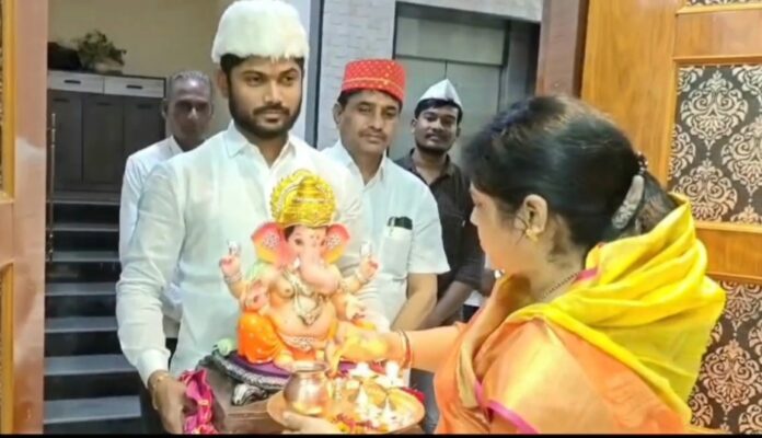 उमरी:- आज संपूर्ण महाराष्ट्रात गणेश चतुर्थीचा (Ganesh Chaturthi) उत्साह पाहायला मिळत आहे. घरोघरी आणि सार्वजनिक मंडळांमध्ये बाप्पाची प्रतिष्ठापना करण्यात आली आहे. उमरी येथील लोककल्याणकारी शेतकरी नेते मारोतराव कवळे गुरुजी यांच्या ‘श्रमसाफल्य निवासस्थानी’ देखील बाप्पा विराजमान झाले आहेत.